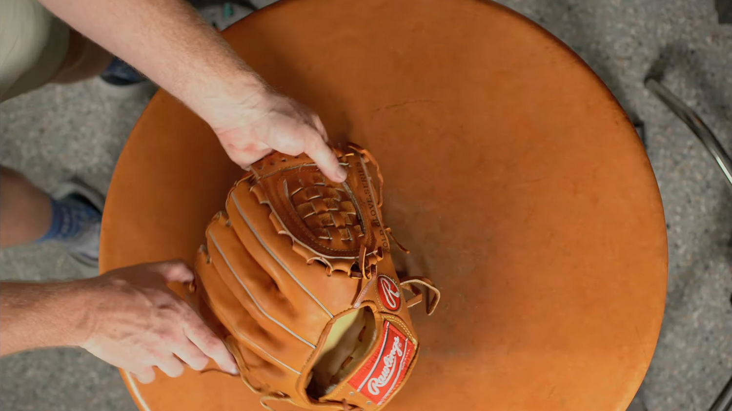 Once the glove is formed and softened to a state where catch play can be performed routinely we then finish the glove with a light cleaning, conditioning and buffing to bring the oil within the glove back to the surface. The glove is then returned to its owner to continue catch play, forming the glove to the owners hand.